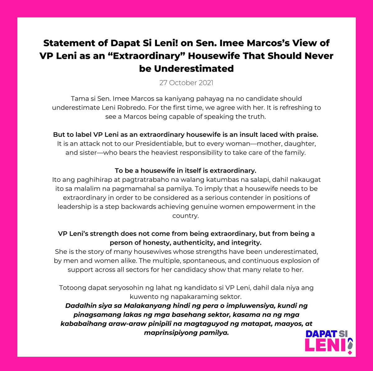 Dapat Si Leni S Tweet Mareng Imee We See Thru U Pakigalingang Mang Insulto Next Time Mabuhay Po Ang Mga Housewives Dapatsileni Husayattibay Trendsmap